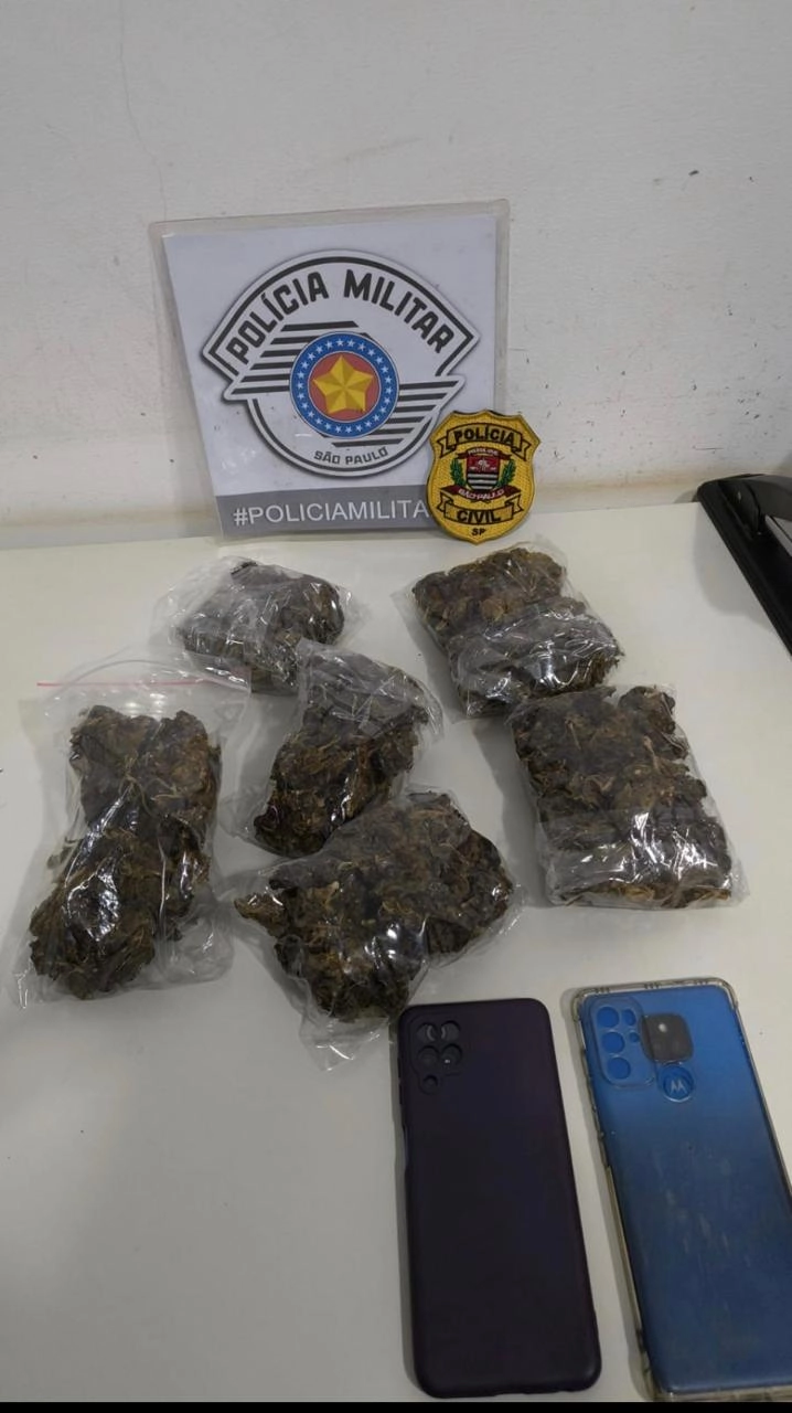 Durante a revista, foram encontradas seis porções de maconha, totalizando aproximadamente 495 gramas, já fracionadas e prontas para a venda. Também foram apreendidos dois aparelhos celulares, que passarão por análise para identificar possíveis conexões com outros envolvidos no tráfico.