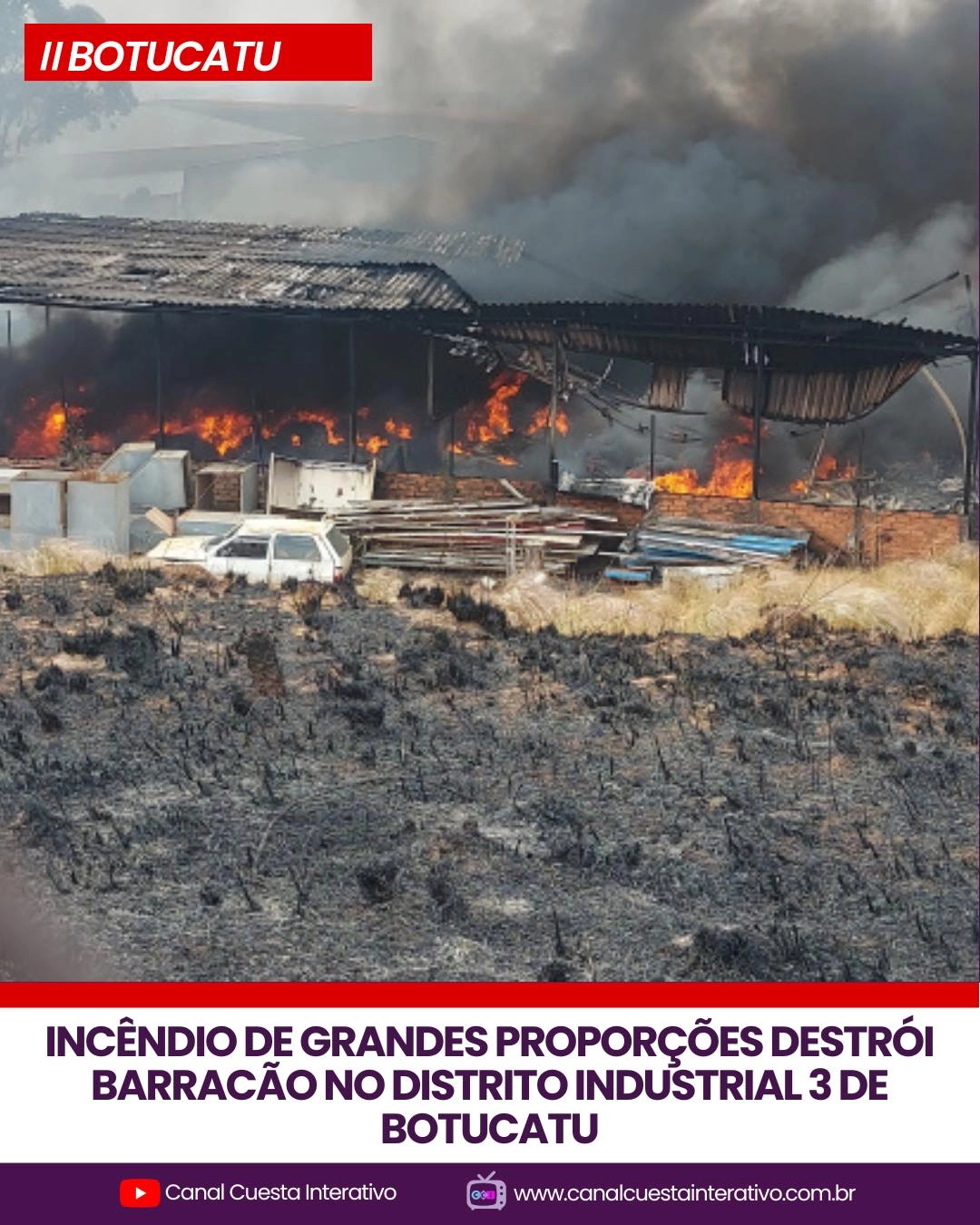 Incêndio de grandes proporções destrói barracão no Distrito Industria...